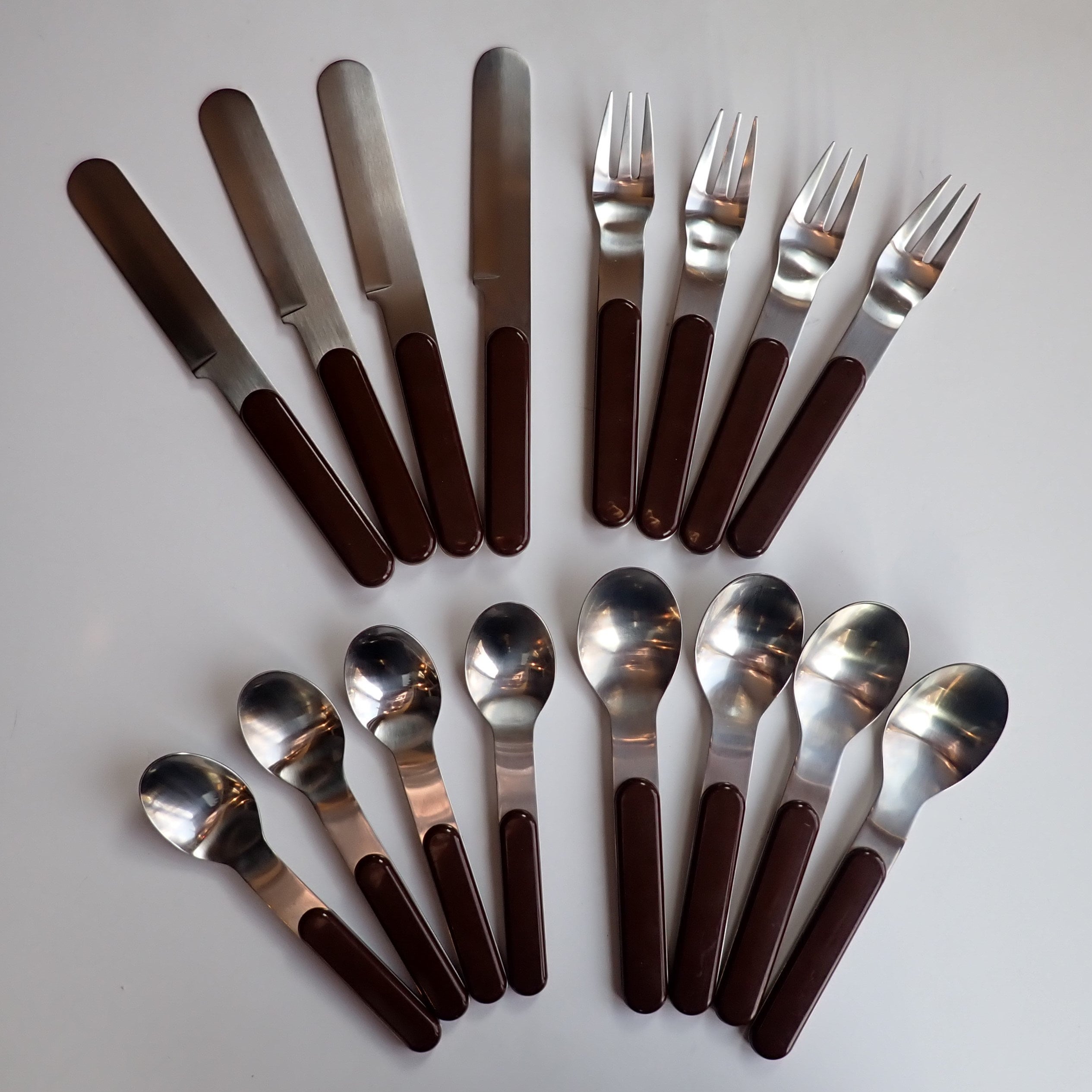 This flatware set by Dansk is in the Summer House Brown pattern and includes 18 pieces - a 4 place service for 4 and 2 serving spoons. Included are