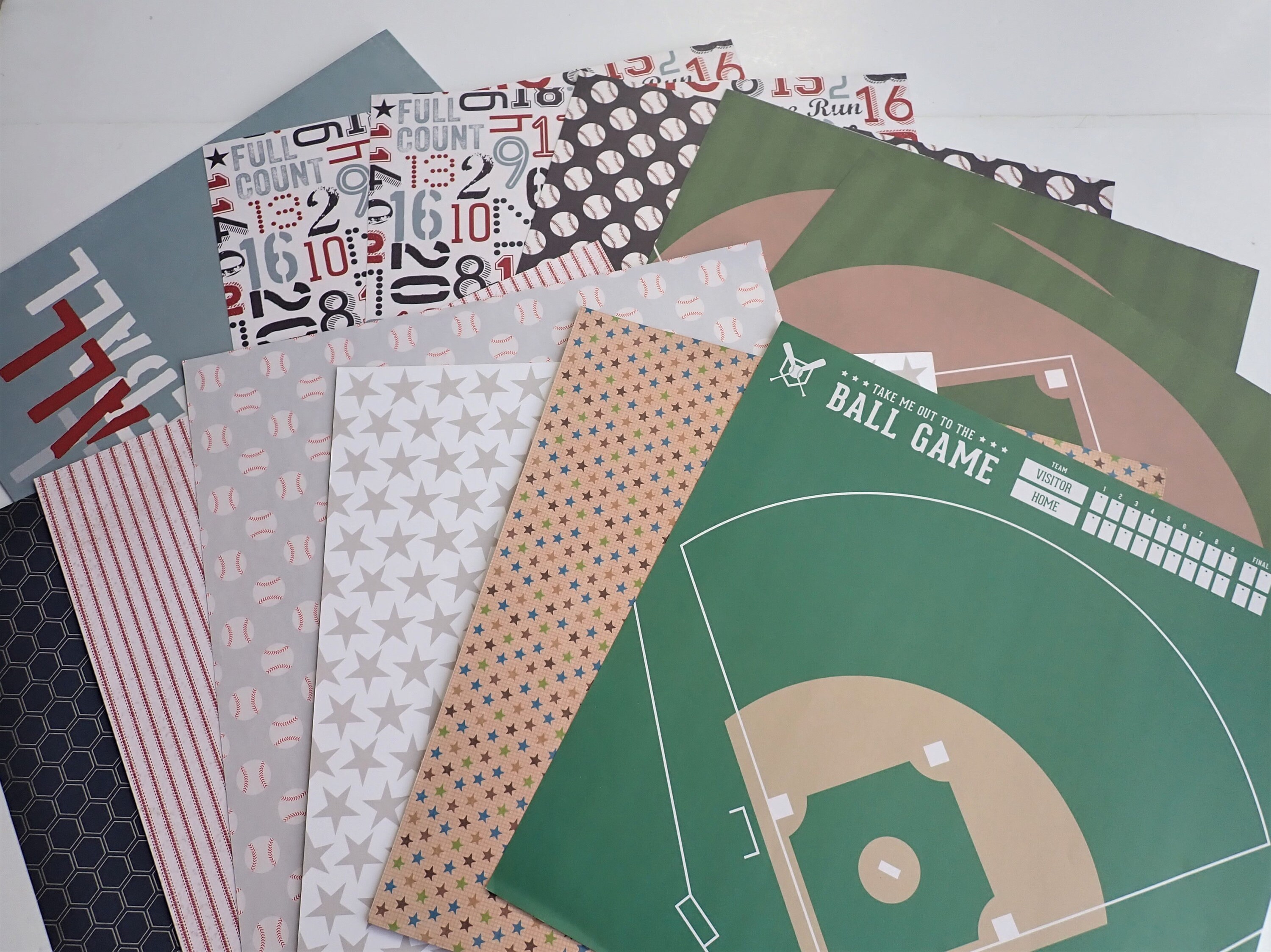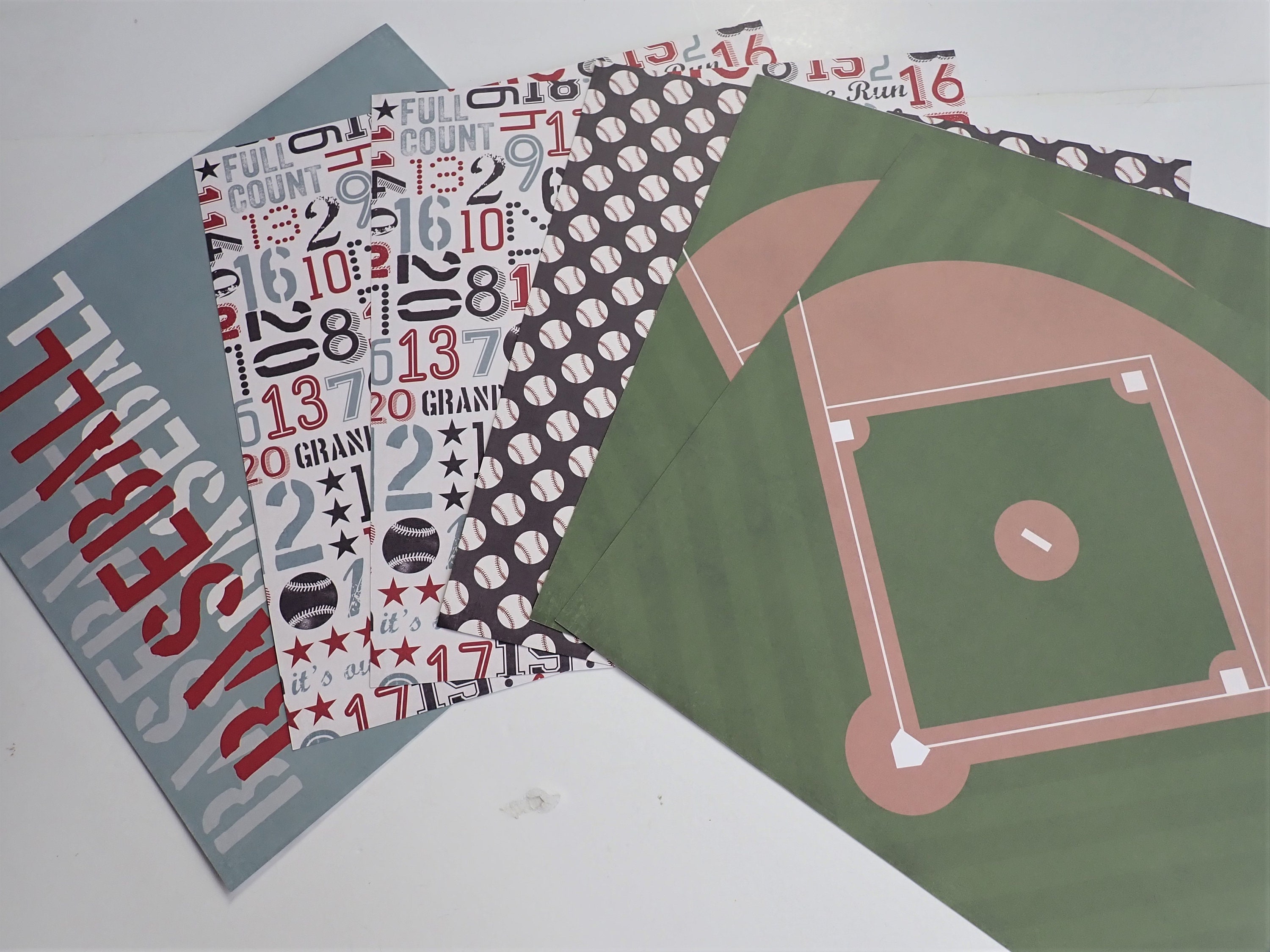 -6 Sheets of Single 12x12 papers - mix and match sports/baseball themed