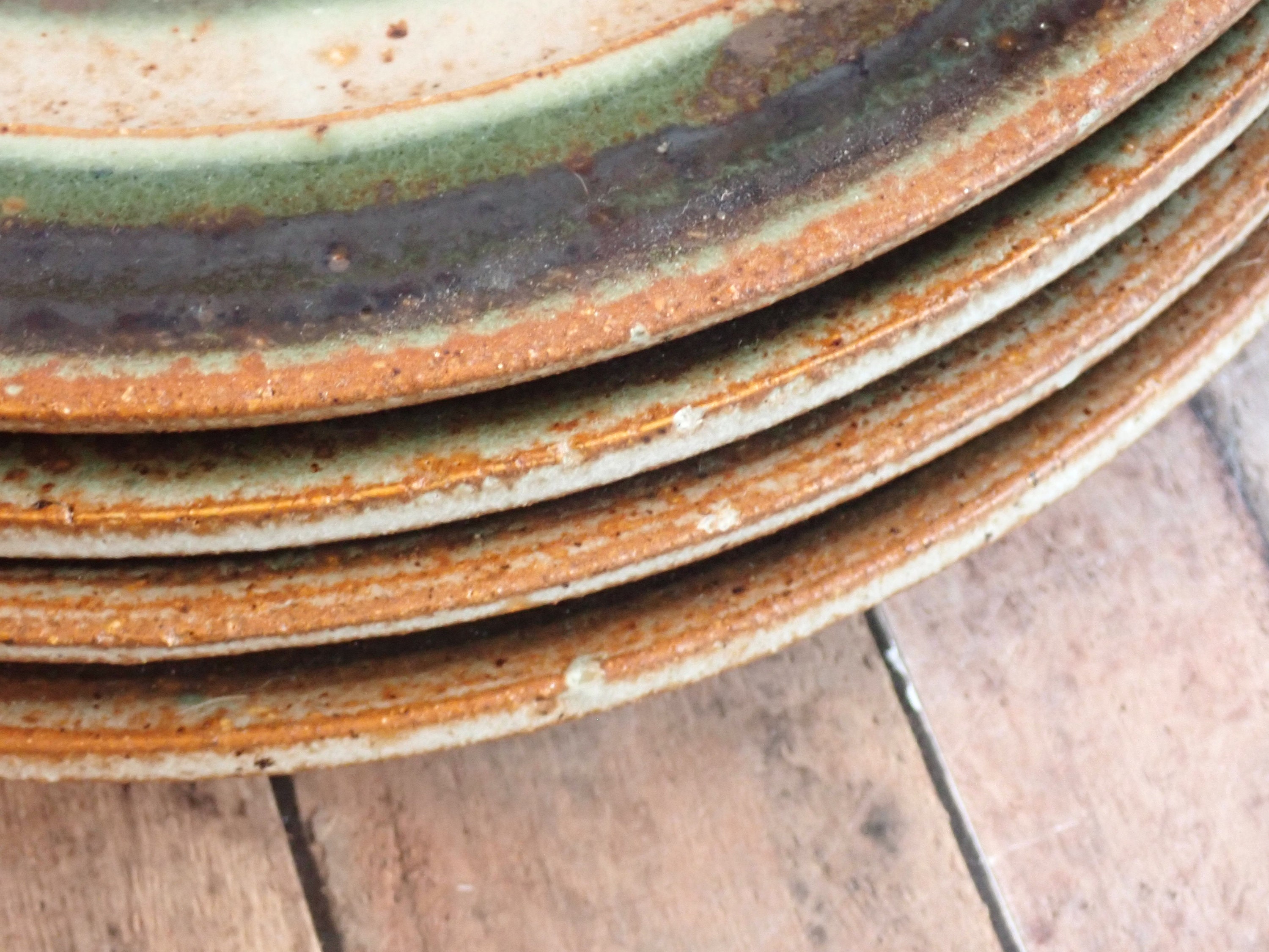 The plate are in nice condition, but they are not perfect - there are some small nicks in the rims of the plates here and there - this is shown in detail in the last two photos. These are rustic pieces and have a bit of a roughness on the plate surface and around the edges.