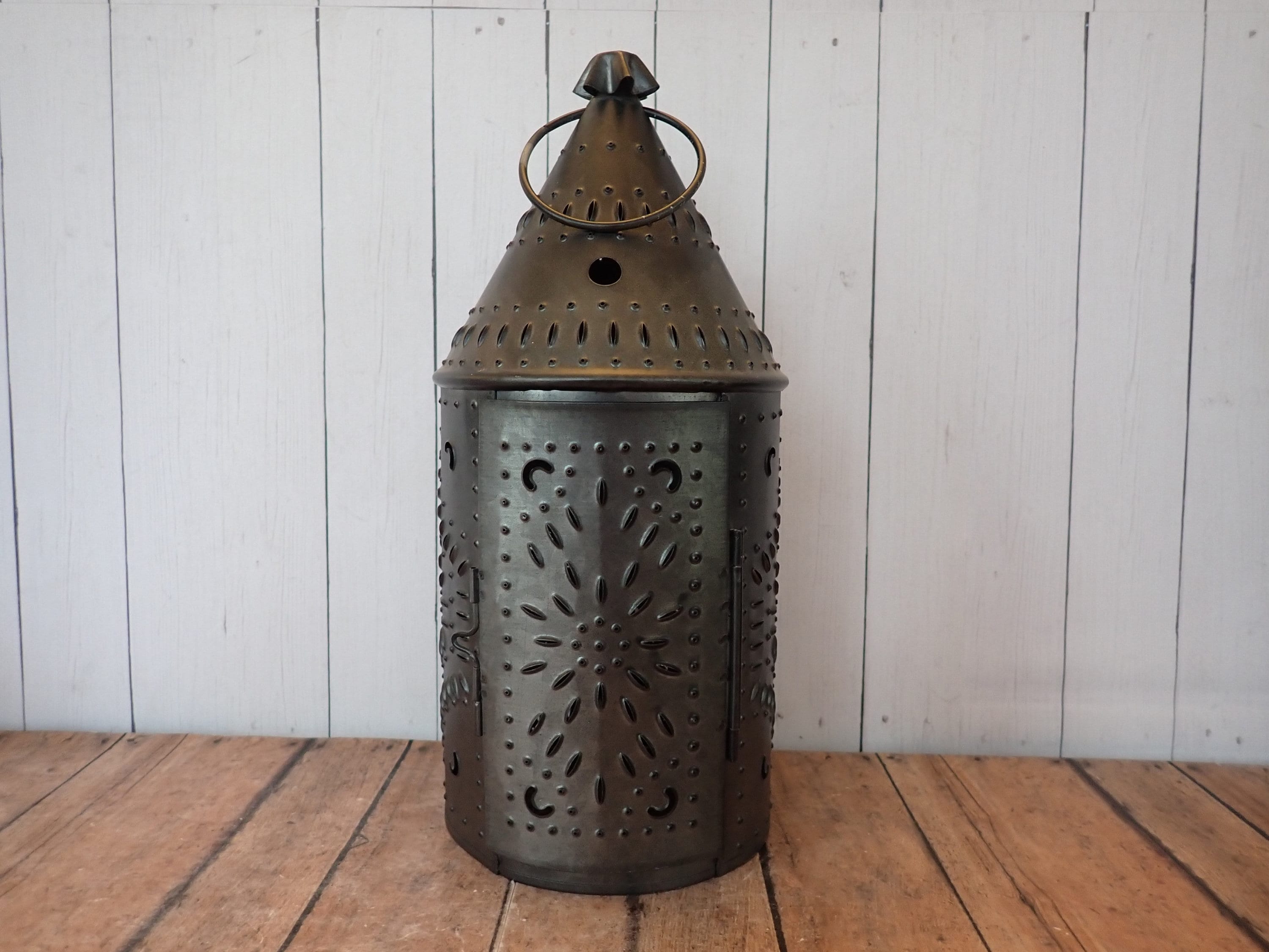 The lantern is in very good condition, this item has a rustic style and there are some light scratches in the metal here and there. This item is a modern reproduction and is not antique.
