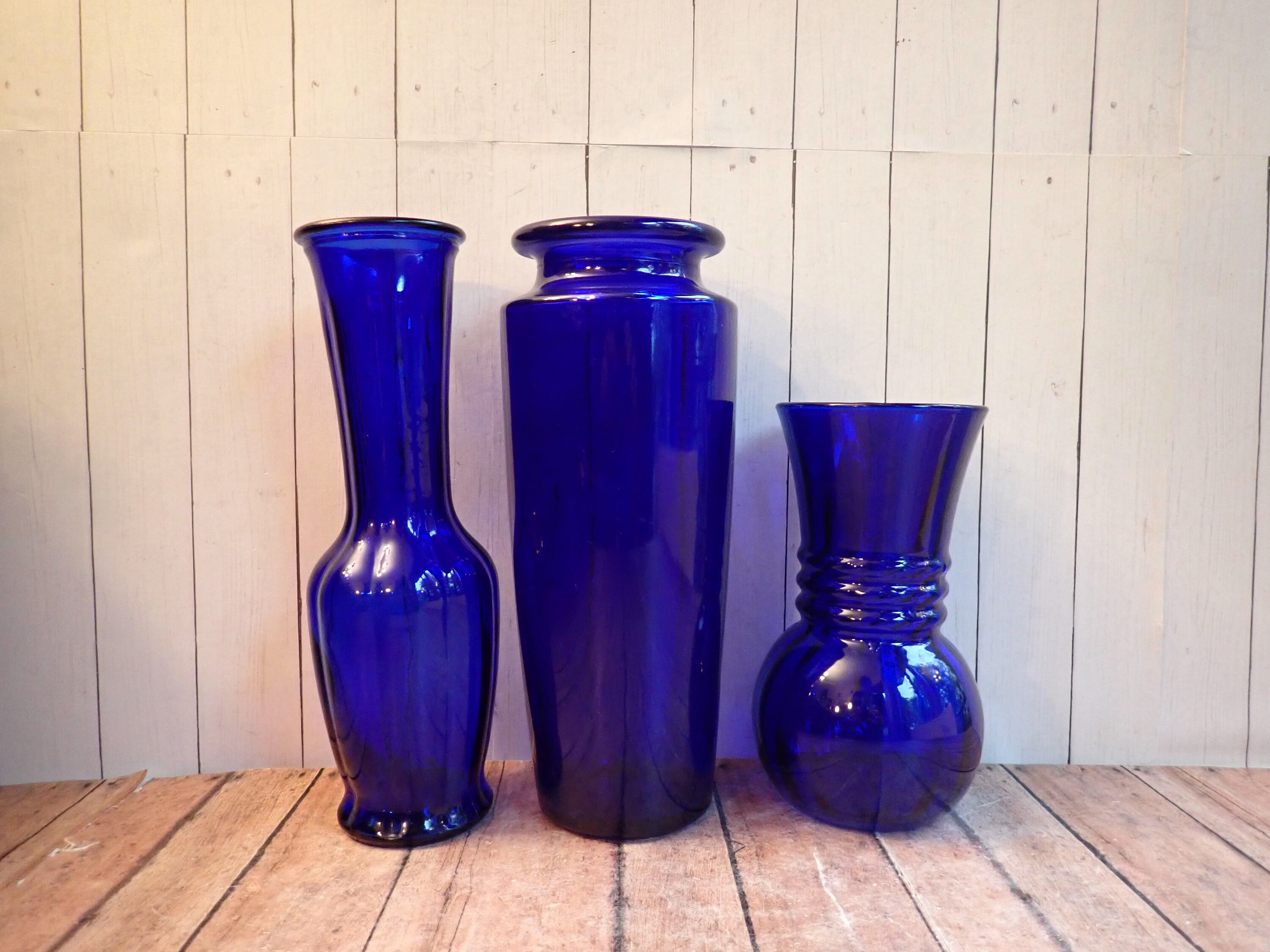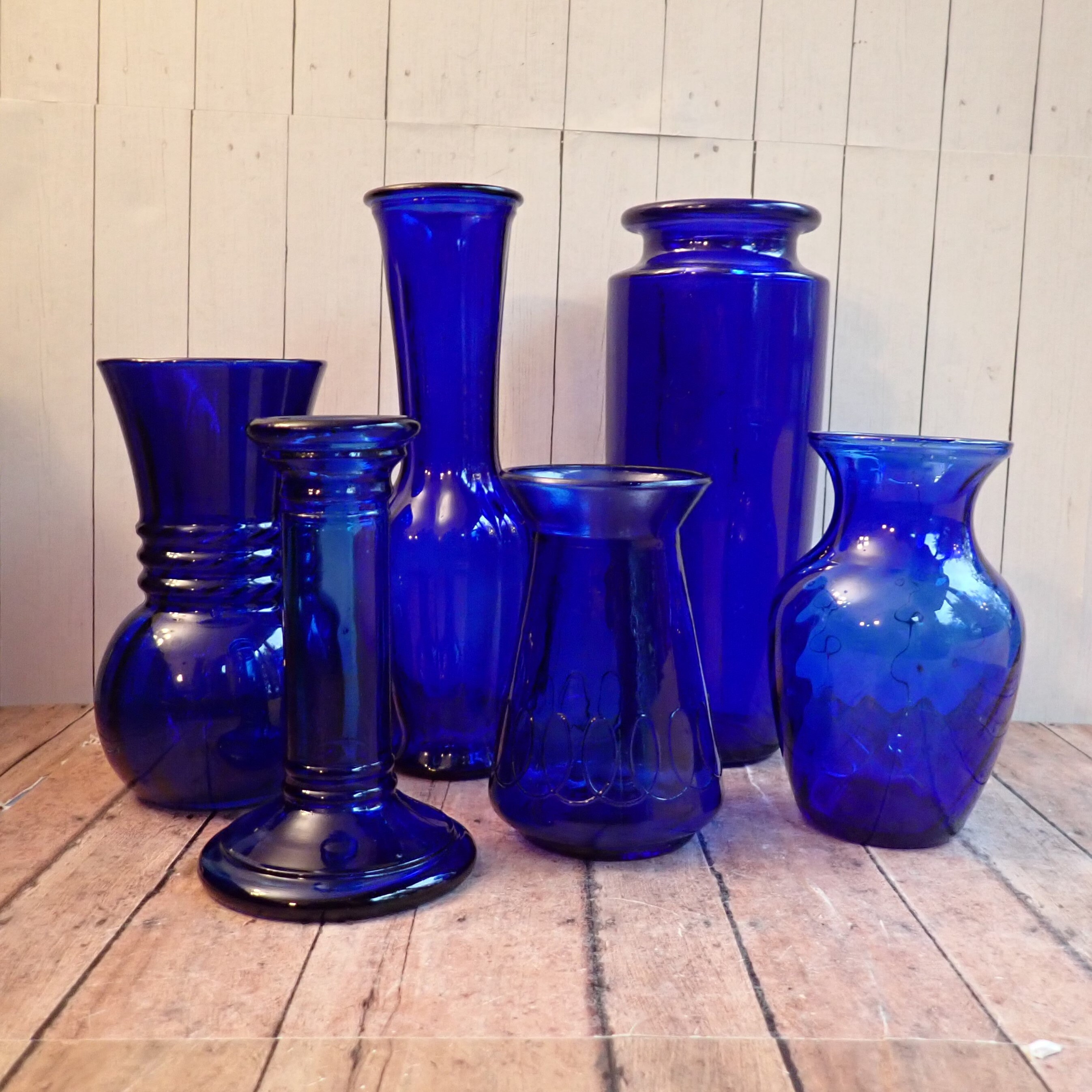 All 6 vases are in very good condition with no chips or cracks. Great set of cobalt blue glass vases!