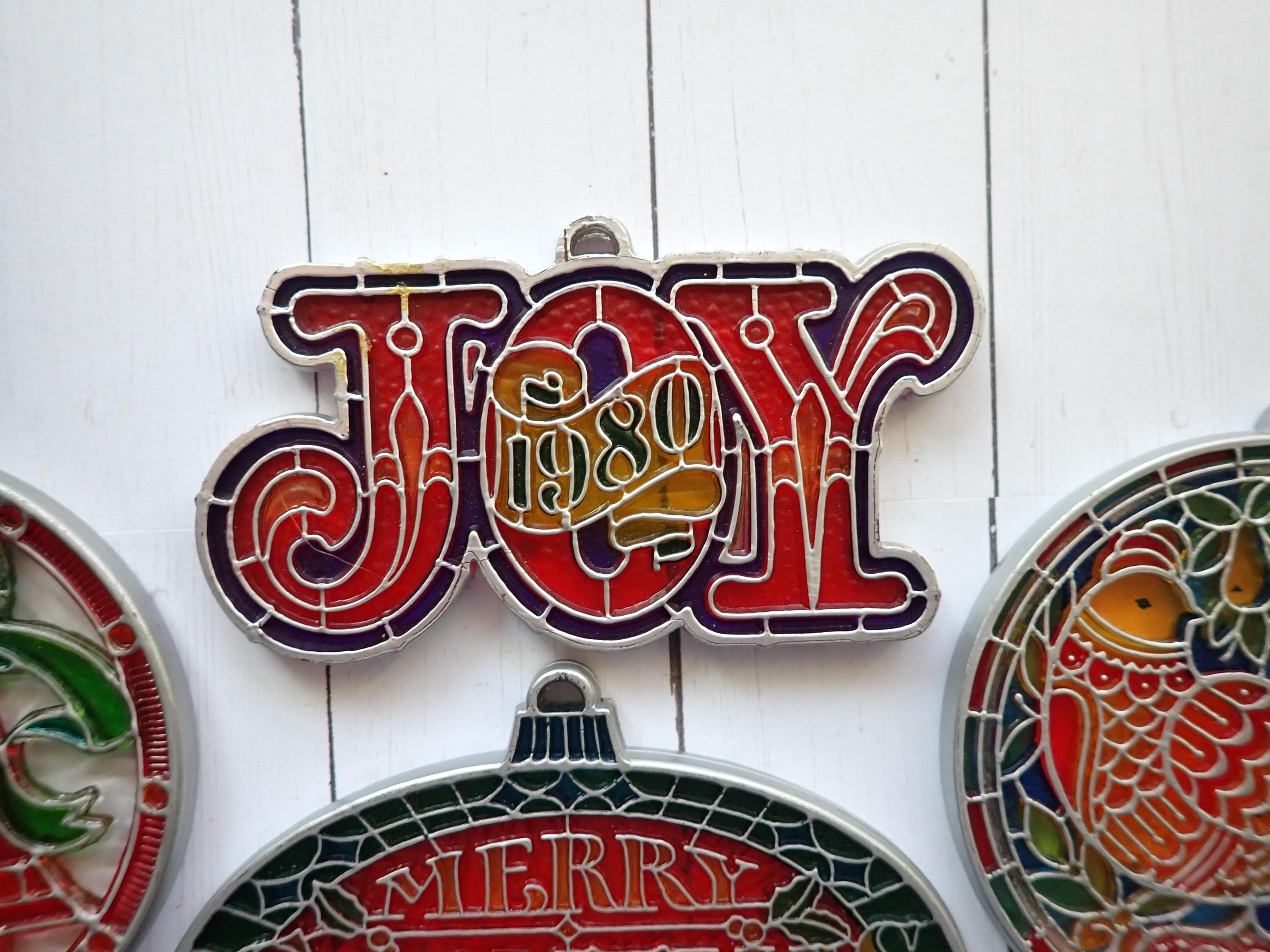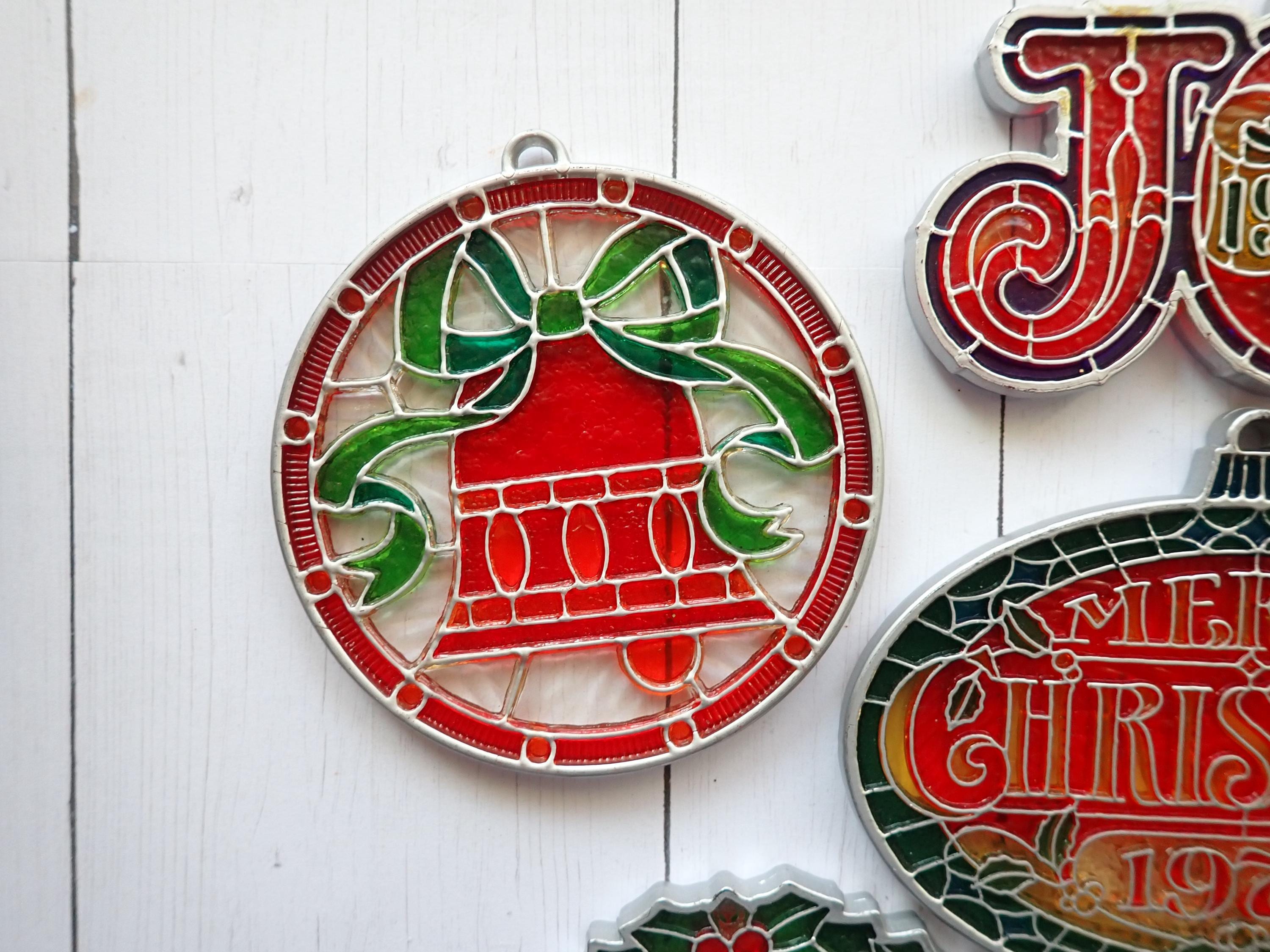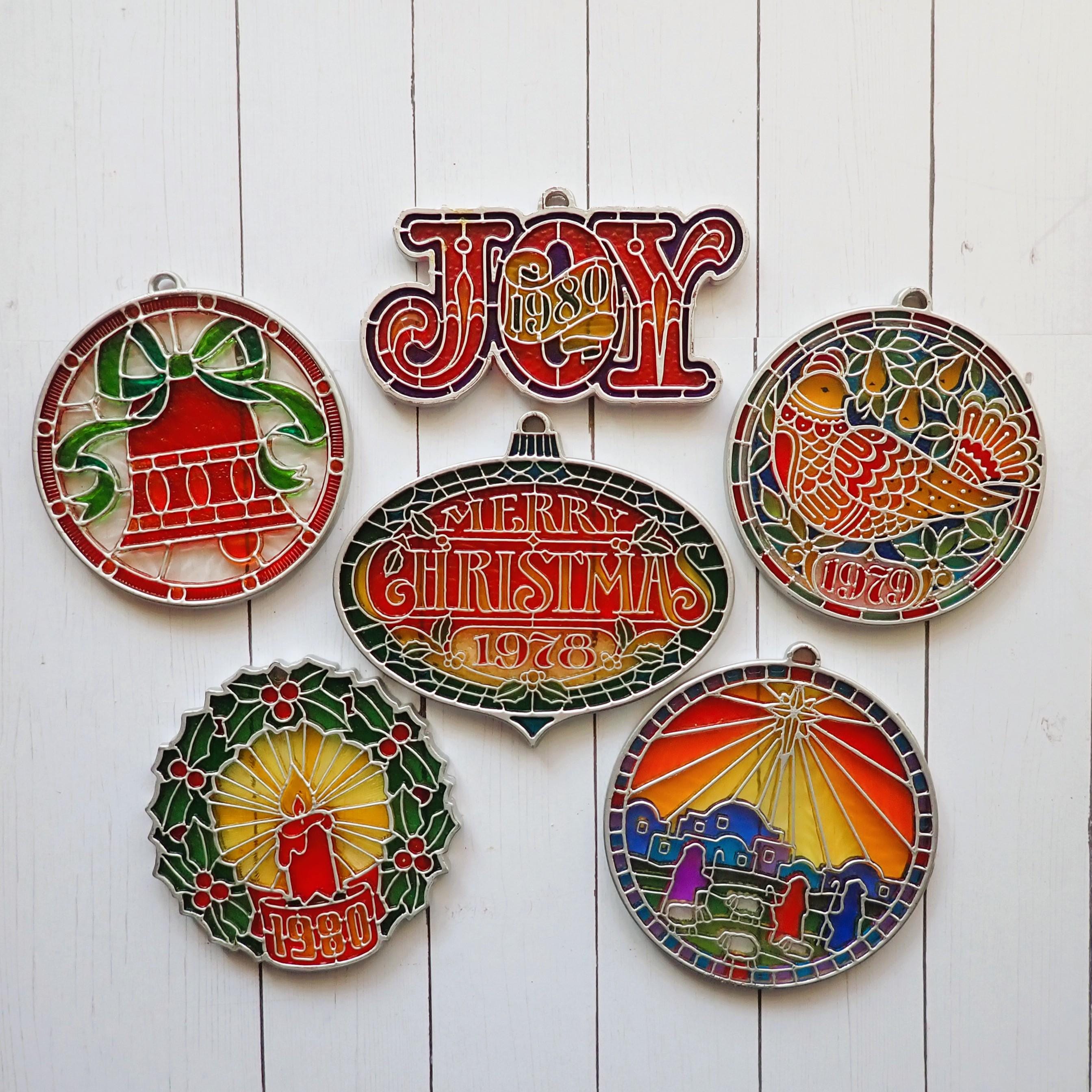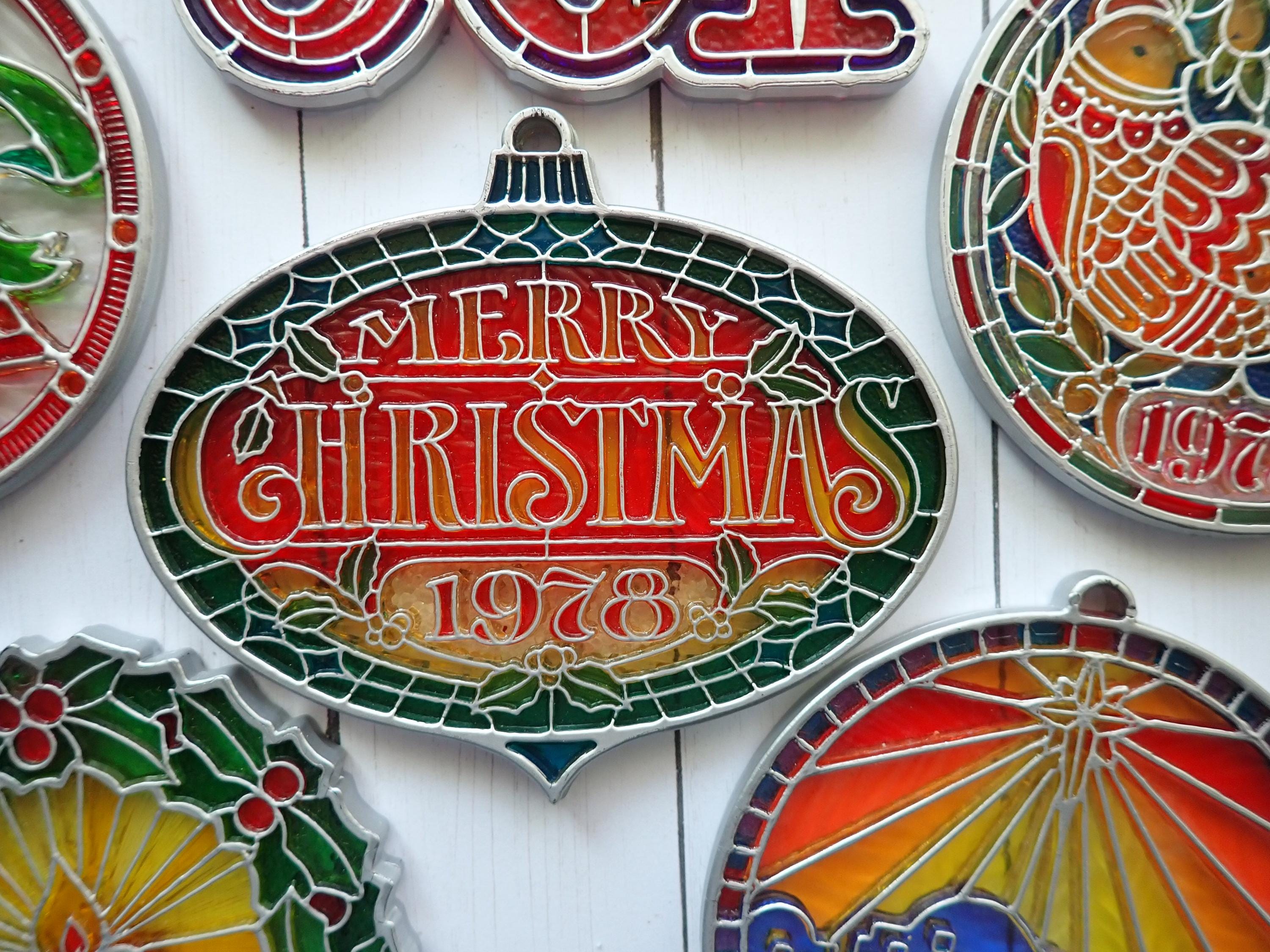 The ornaments are plastic and have a stained-glass style. Great set of vintage Hallmark!