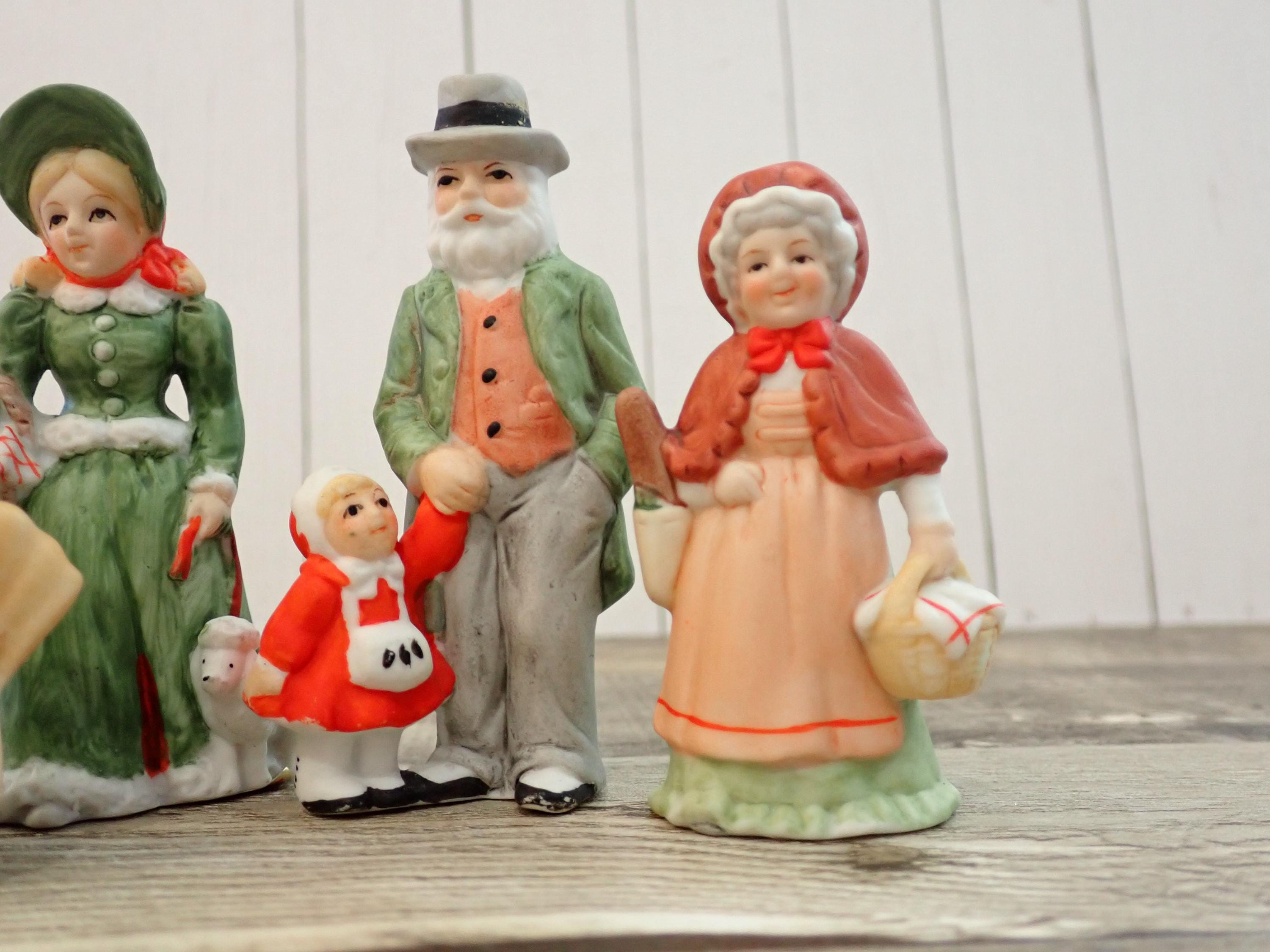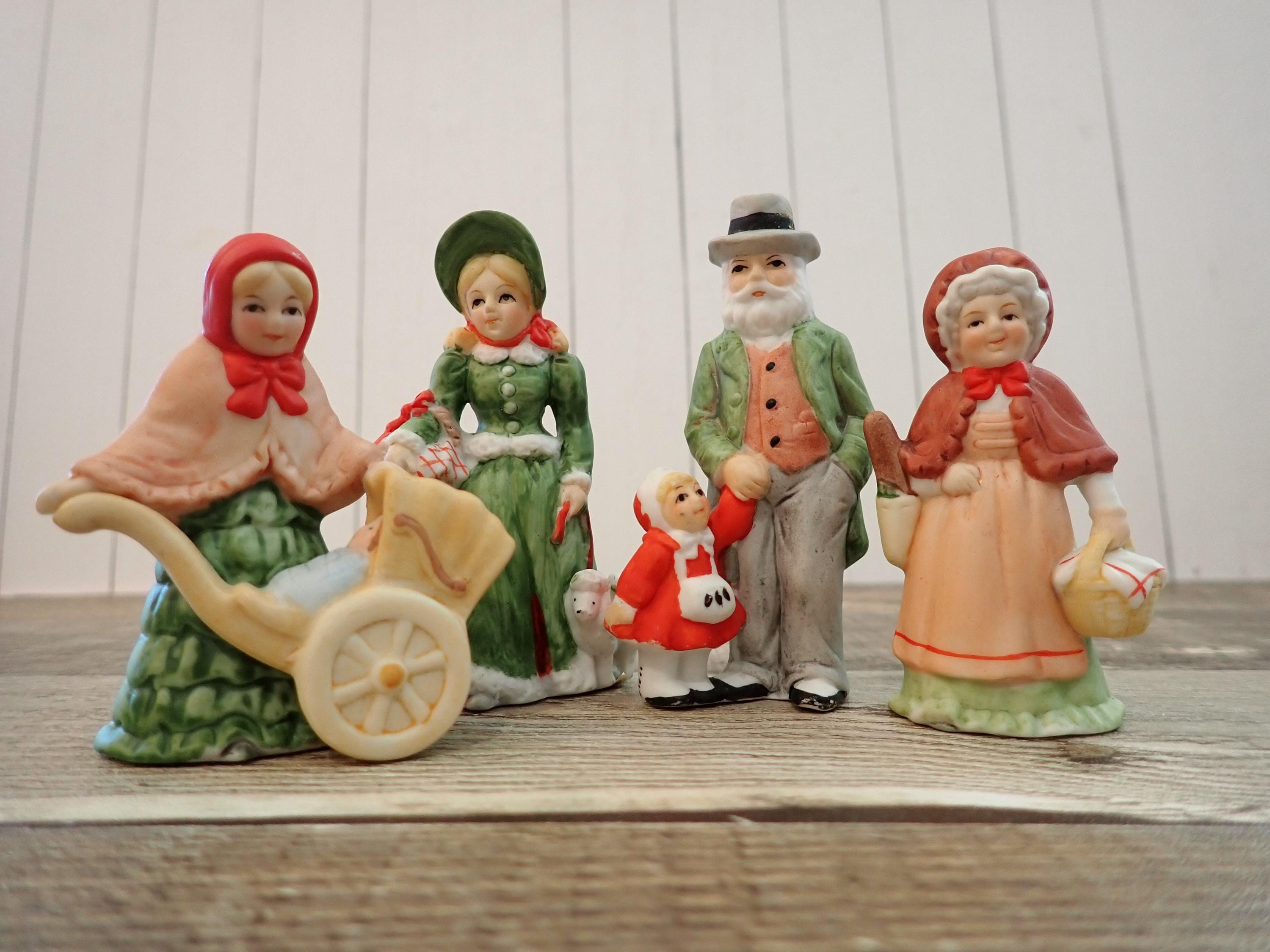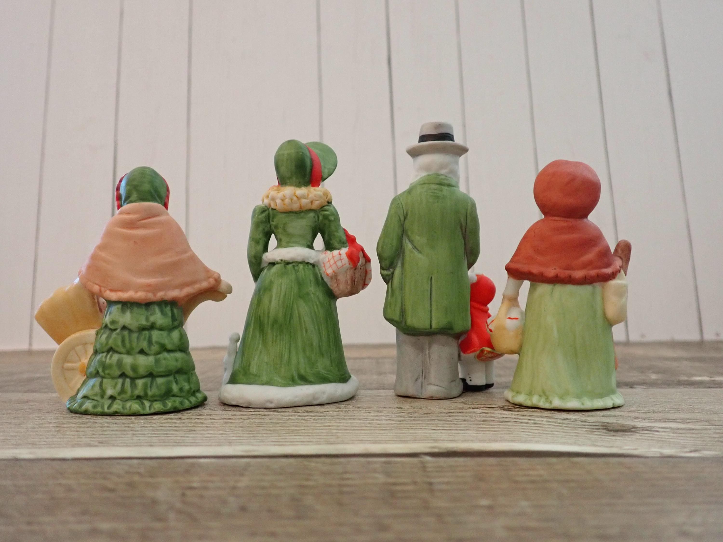 These Lefton Colonial Village figurines is a set of 4 of the Eberhardts and includes the Grandma figurine, Grandpa with Child, Girl with Dog, and the Mother and Baby figurine. They are all marked 1986 / GZL / 05827. They are all about 2.75" tall. All 4 figurines are in very good condition with no chips or cracks.