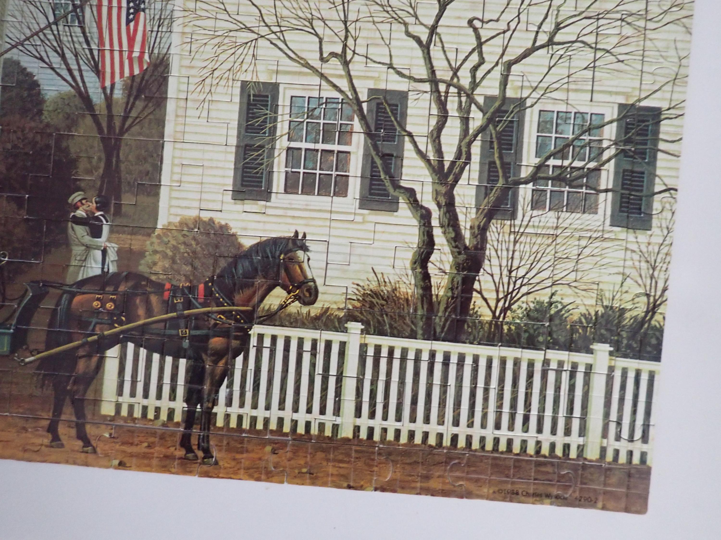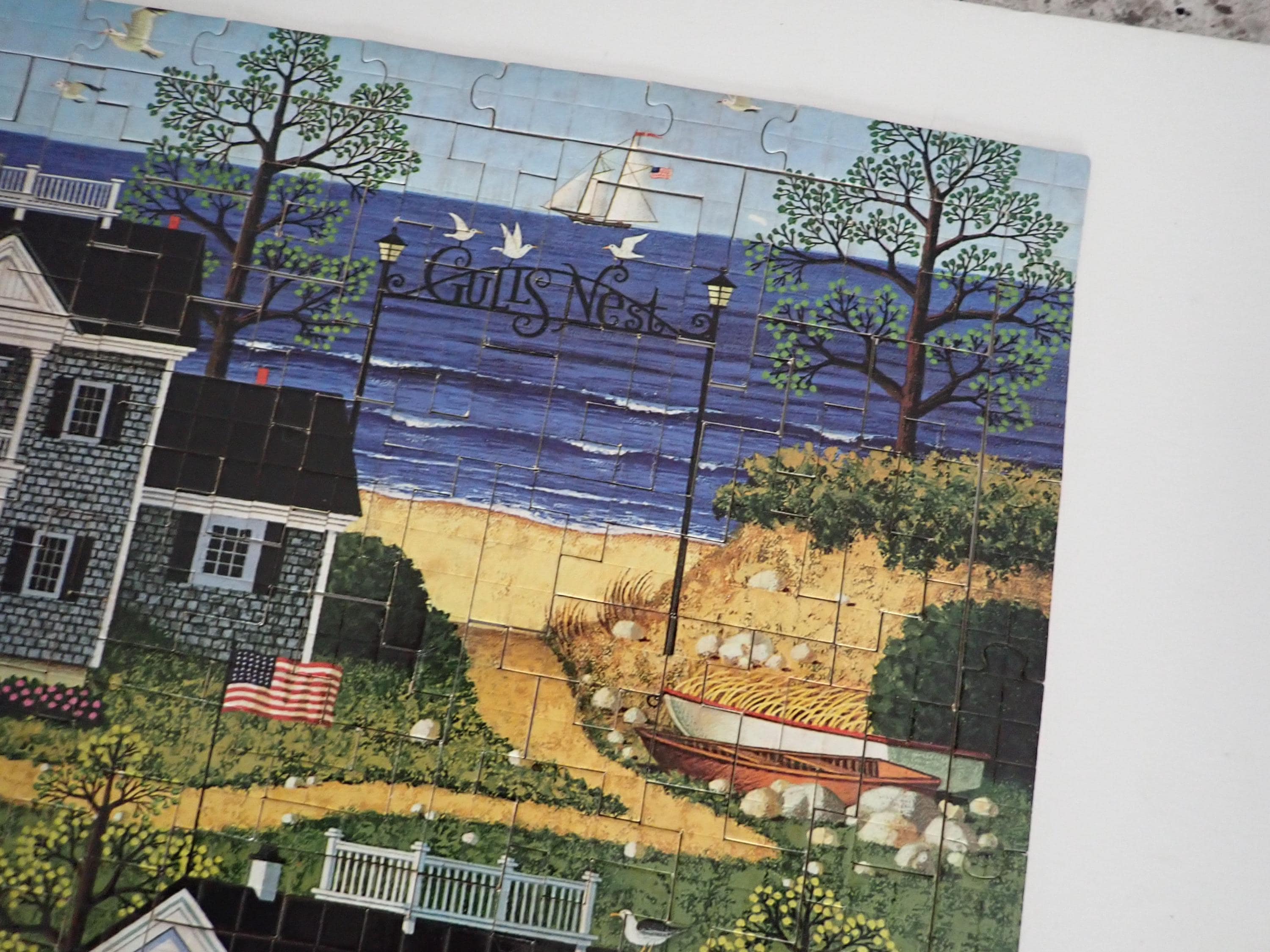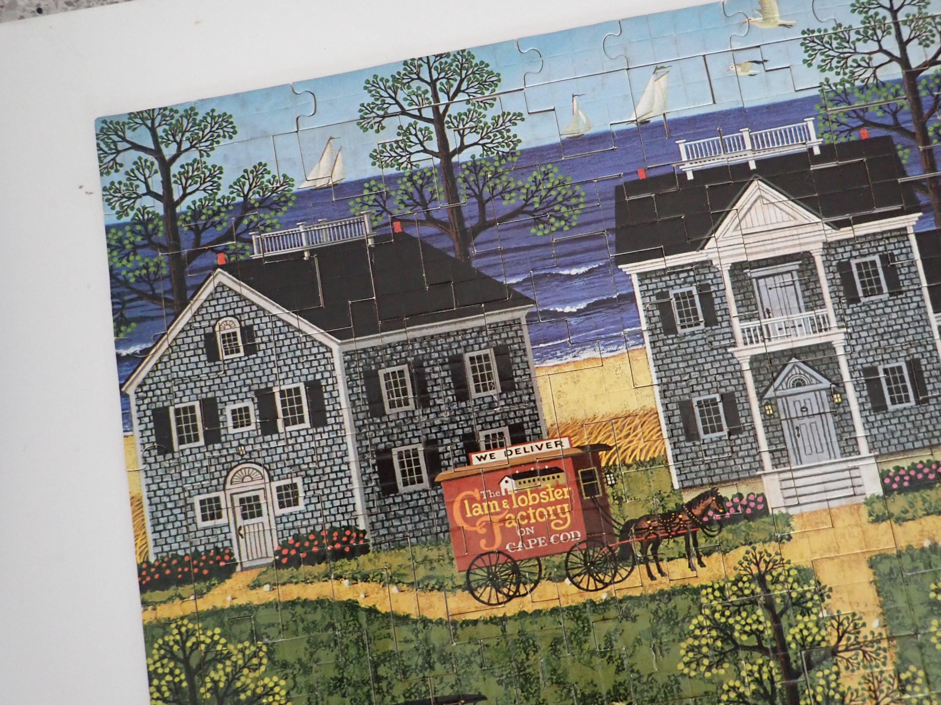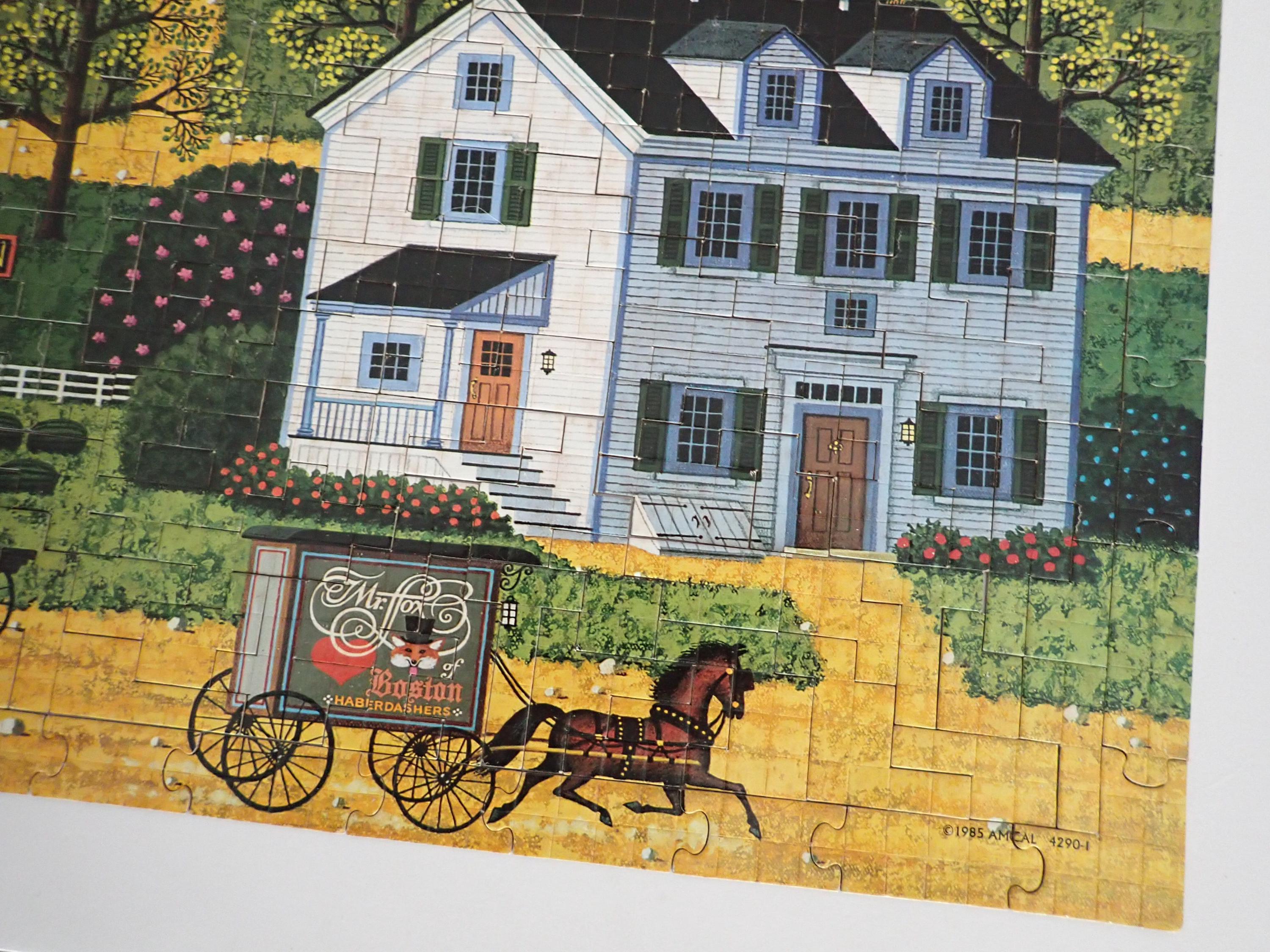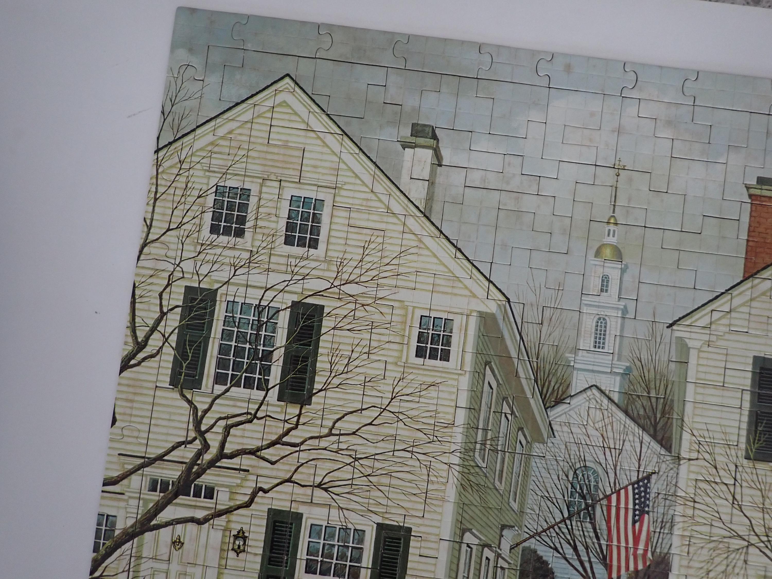 This set of 2 jigsaw puzzles by Charles Wysocki includes 2 mosaic puzzles - the Gulls Nest and Jacob Amherst My Milkman. Both puzzles feature unique mosaic, square cut puzzle pieces. The puzzles have a finished size of 17" x 20". The box does not state the number of pieces but these are 300 piece puzzles. Both puzzles are in very good condition with no missing pieces and no damage to any of the pieces. The boxes are in nice condition but do have some tape on the edges.