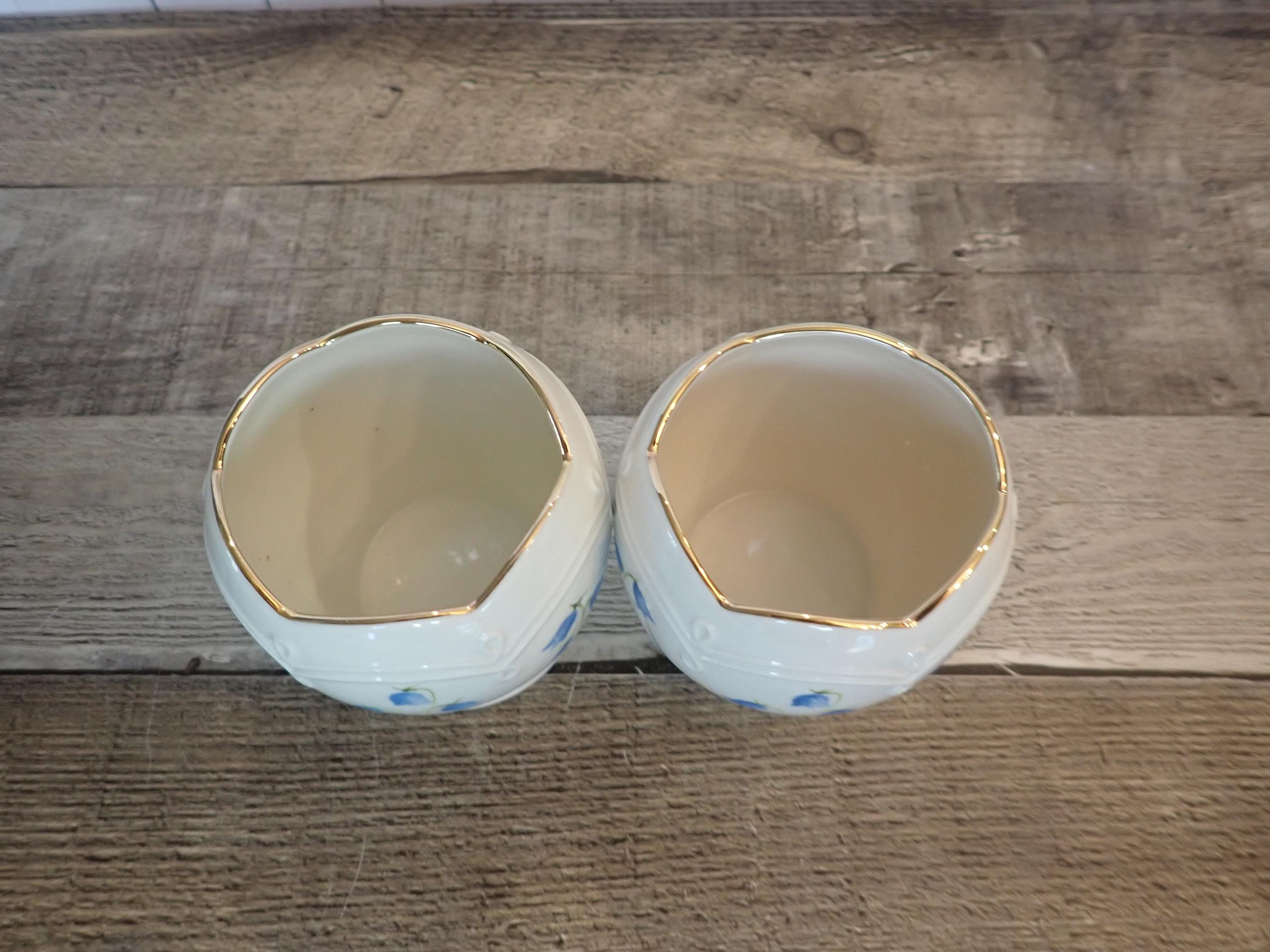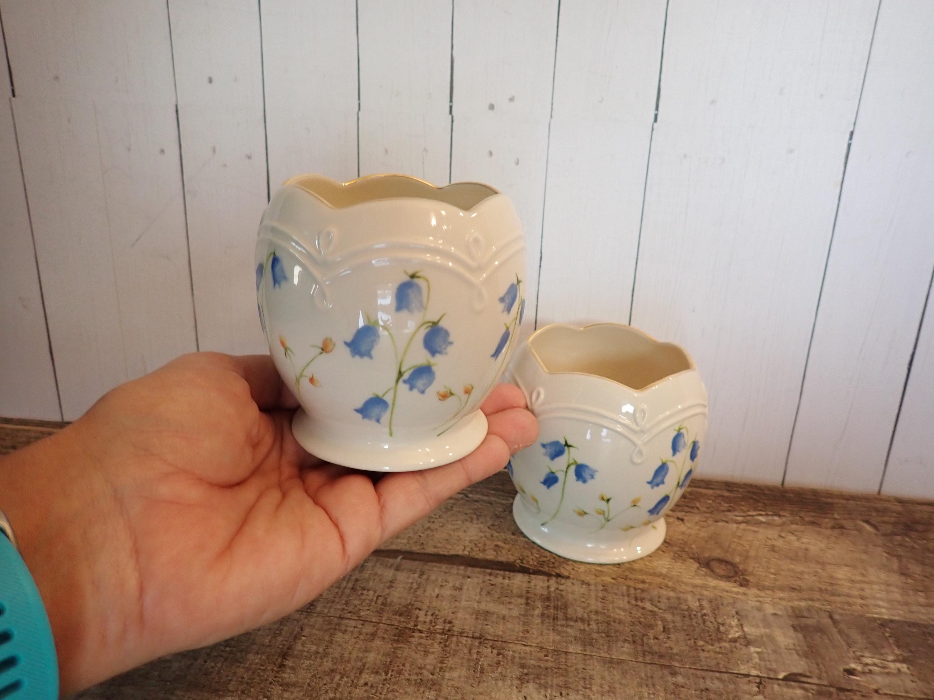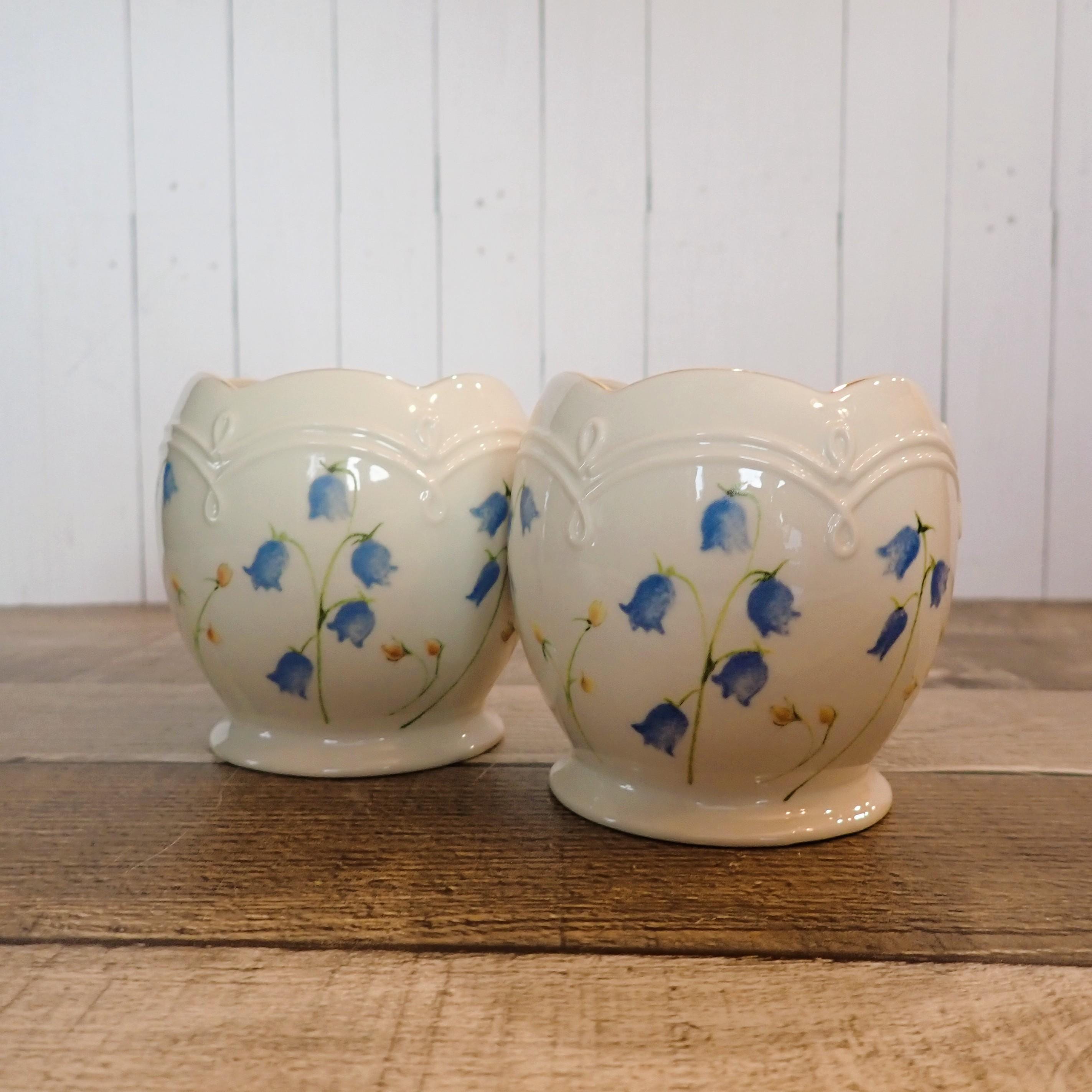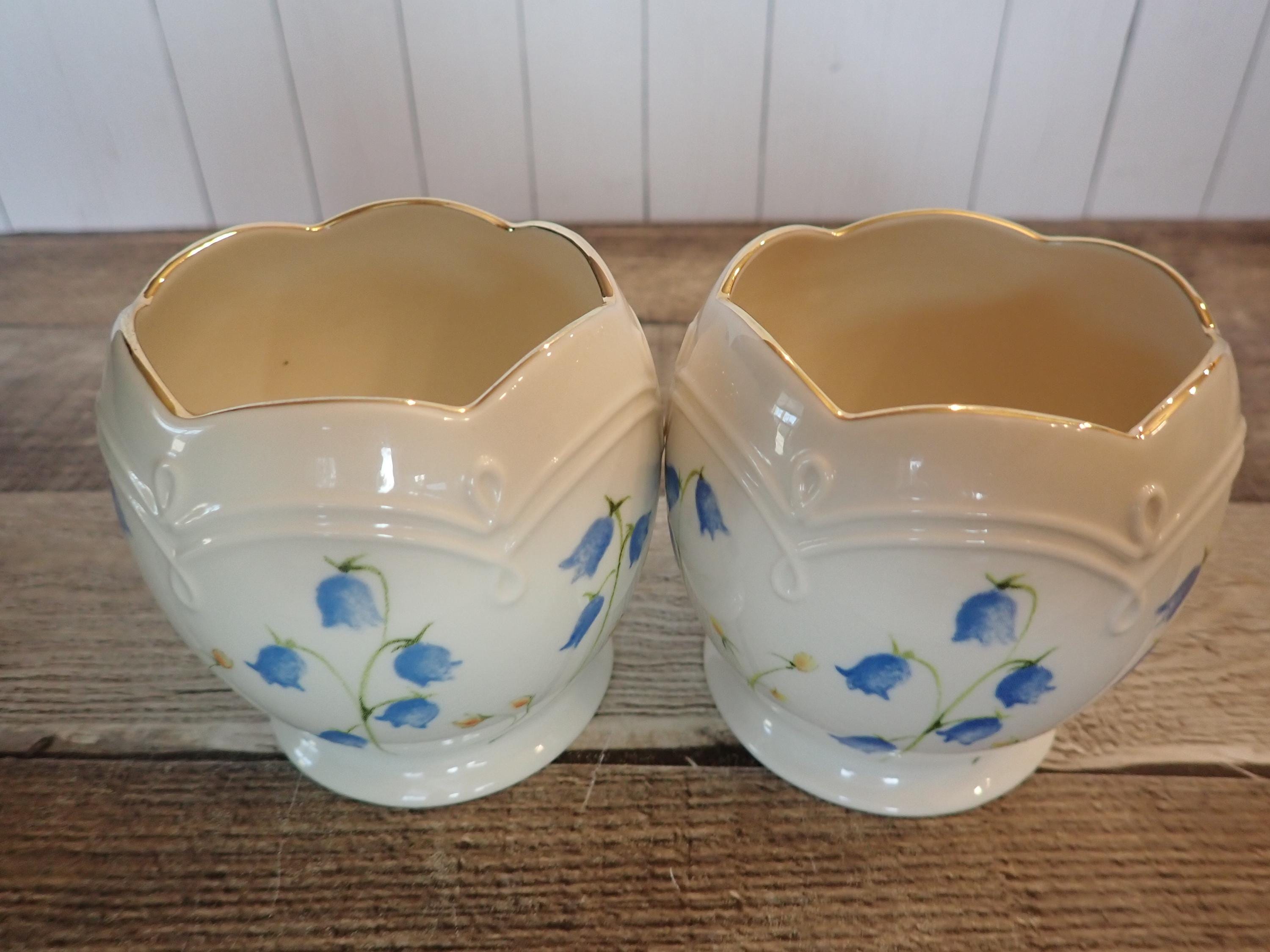 This set of 2 Lenox candleholders includes 2 matching holders in the same pattern. They are3.25" tall and 3.25" wide at the widest point. They are an ivory colored ceramic with a blue flower design around the holders. They are marked Lenox on the bottom. Both candle holders are in very good condition with no chips or cracks.
