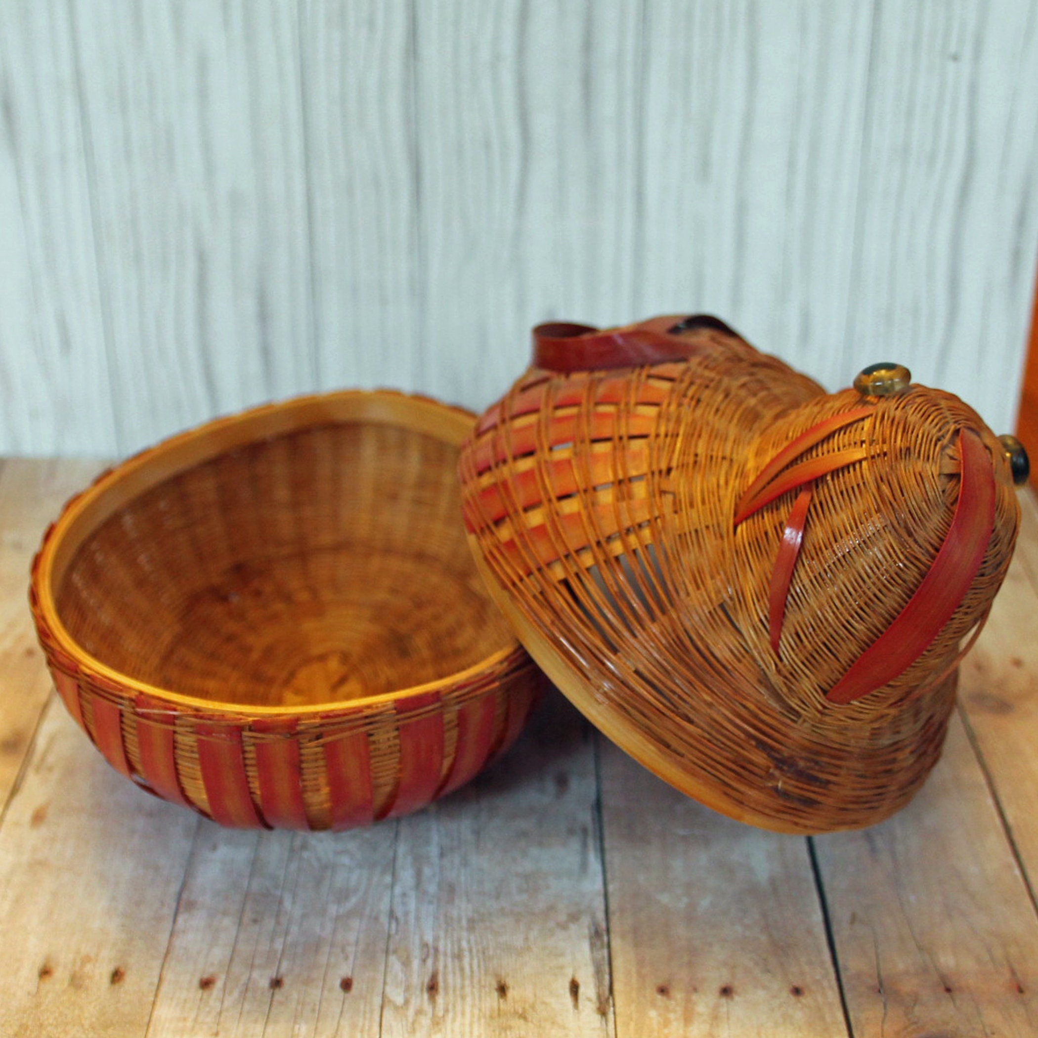 This basket is in very good condition with no breaks or cracks in the weaving. The top half of the bird fits tightly on the bottom half - it just takes a little wiggling to take it on and off.