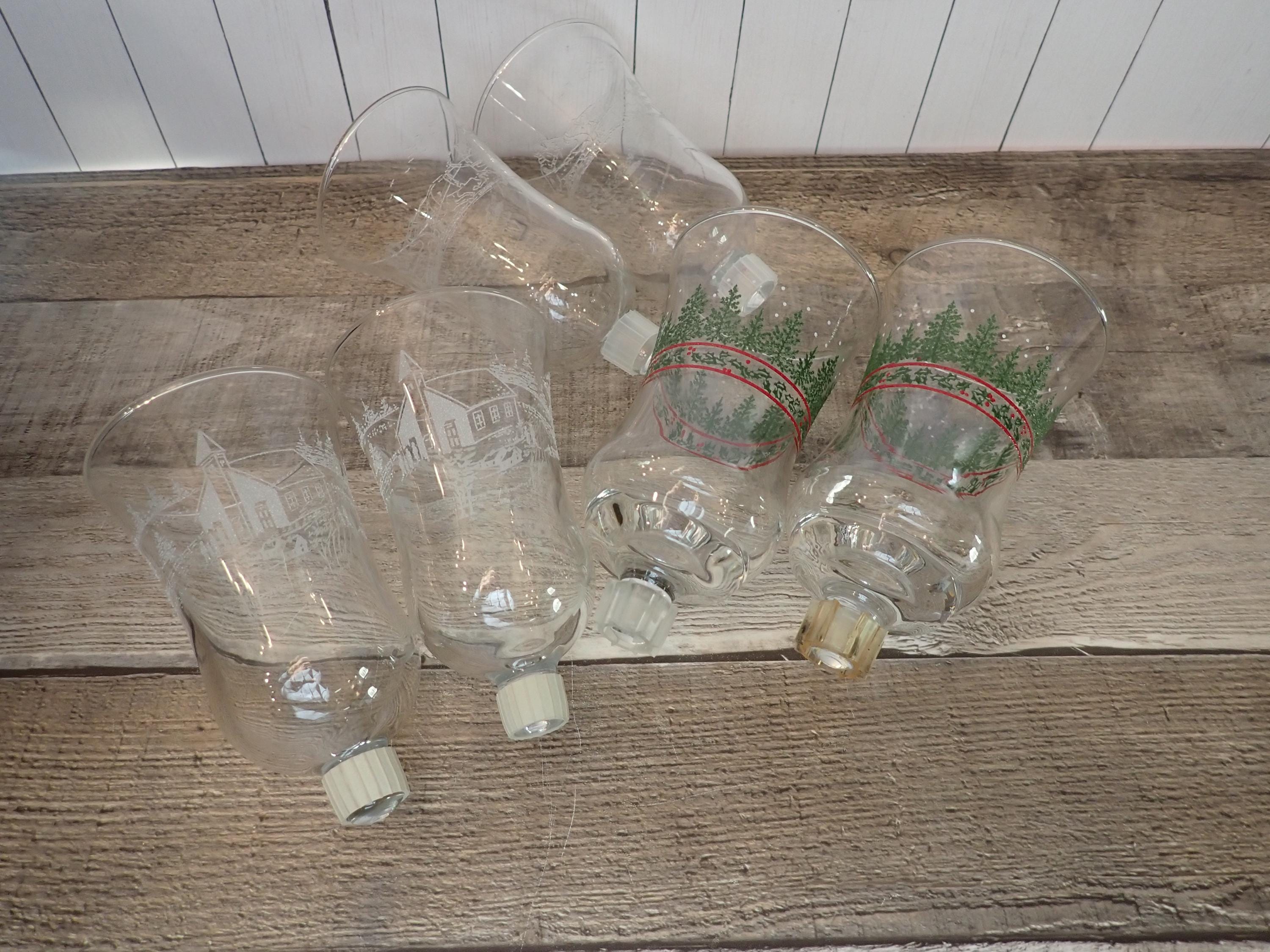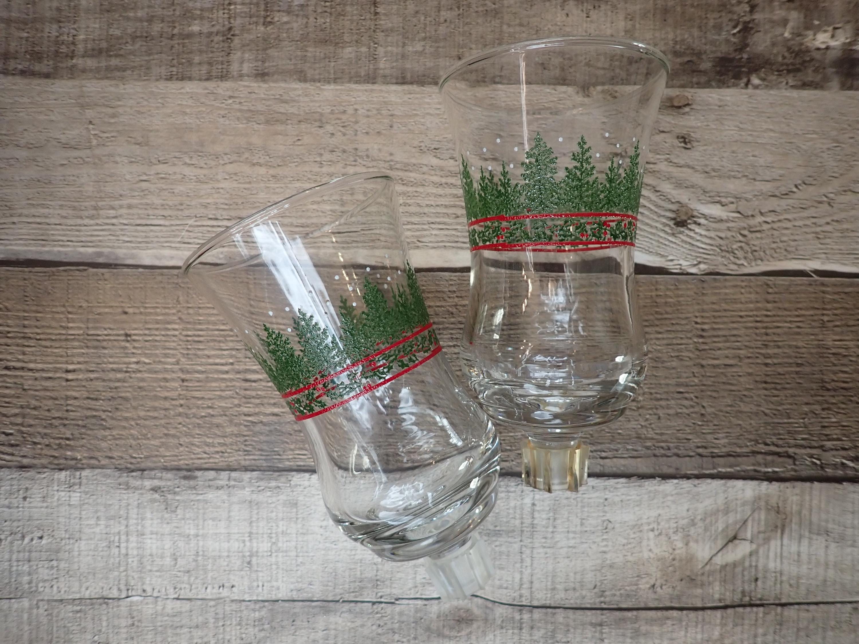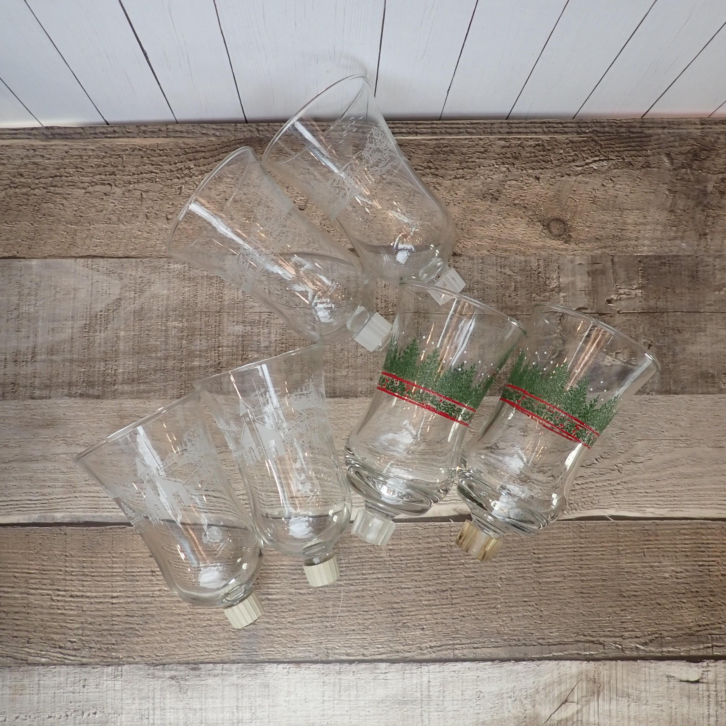These glass Christmas themed glass votive cups are all Medium to Large sized votive cups measuring 4" tall or larger. Availability changes often - please choose your pattern from the drop-down menu. Quantity of 1 = 1 Pair. Please see the photos for designs: