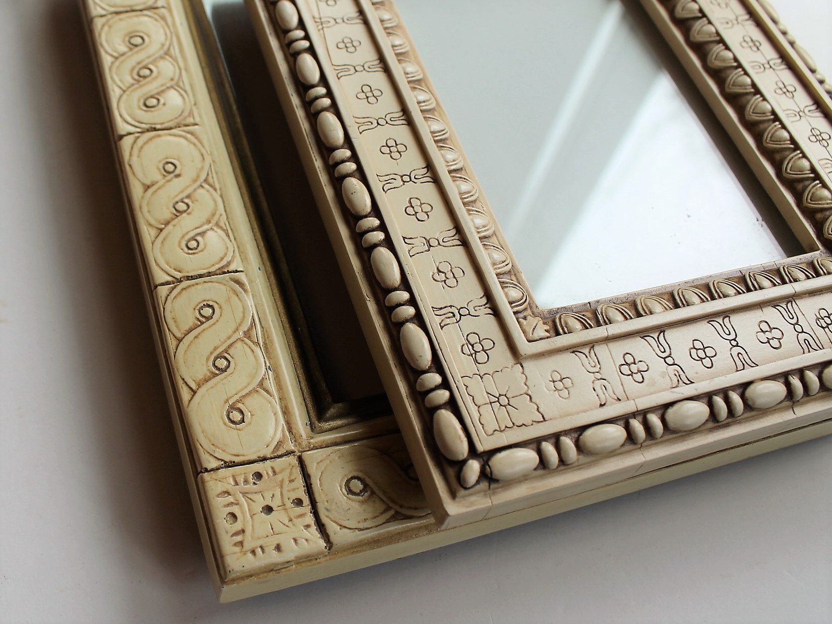 Both frames are in very nice condiiton, however given their rustic nature there are scratches and nicks in the frames, as well as manufactured "cracks" that are not real cracks.