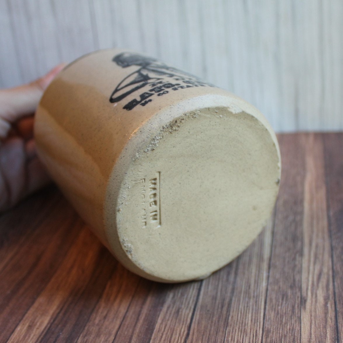 The bottle is in good condition, however there is one small nick in the base. Great old stoneware advertising bottle!