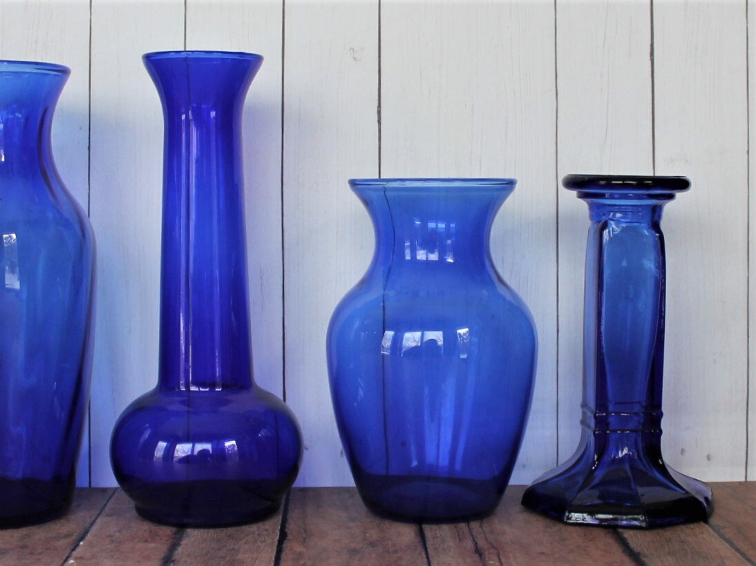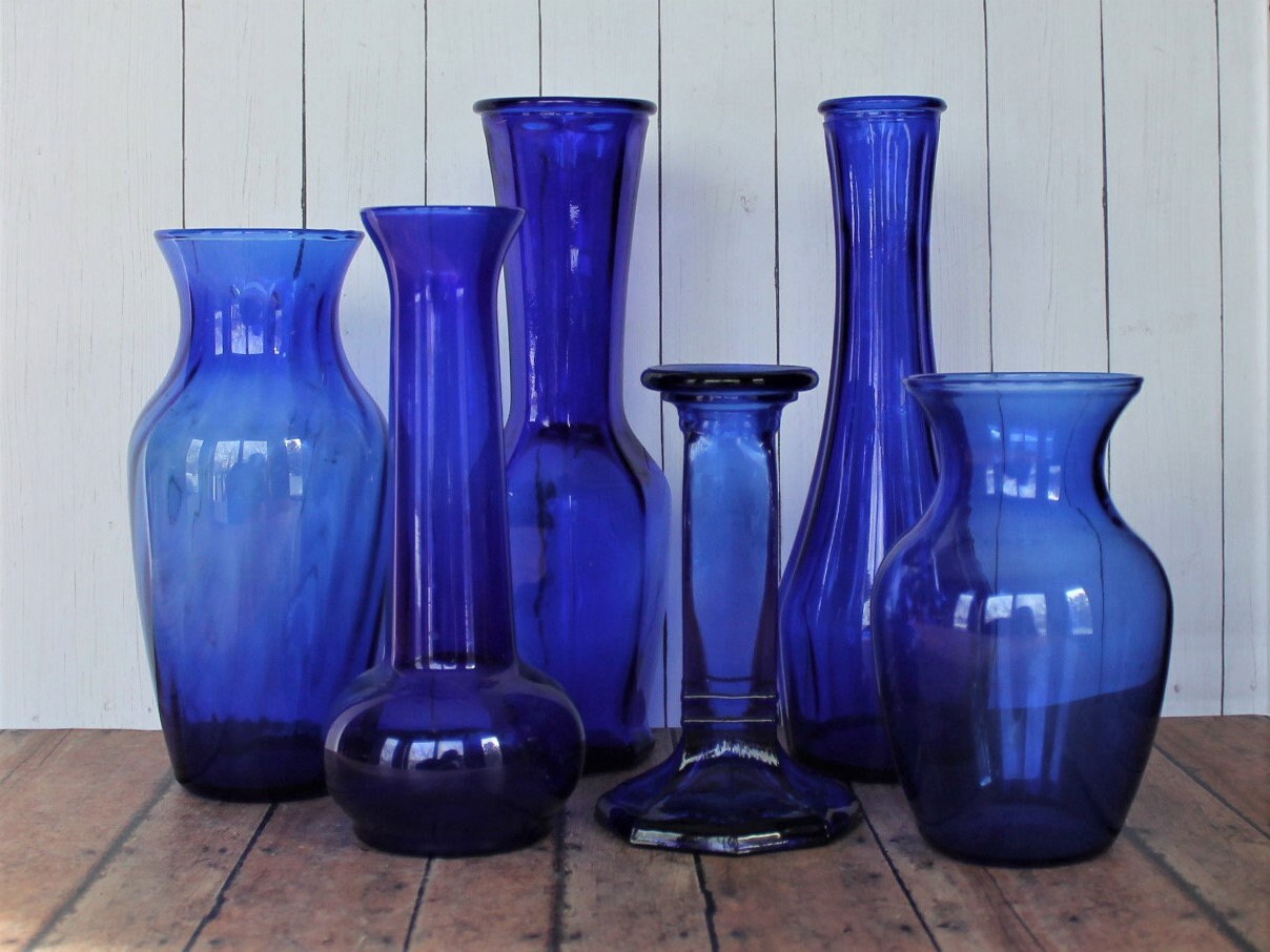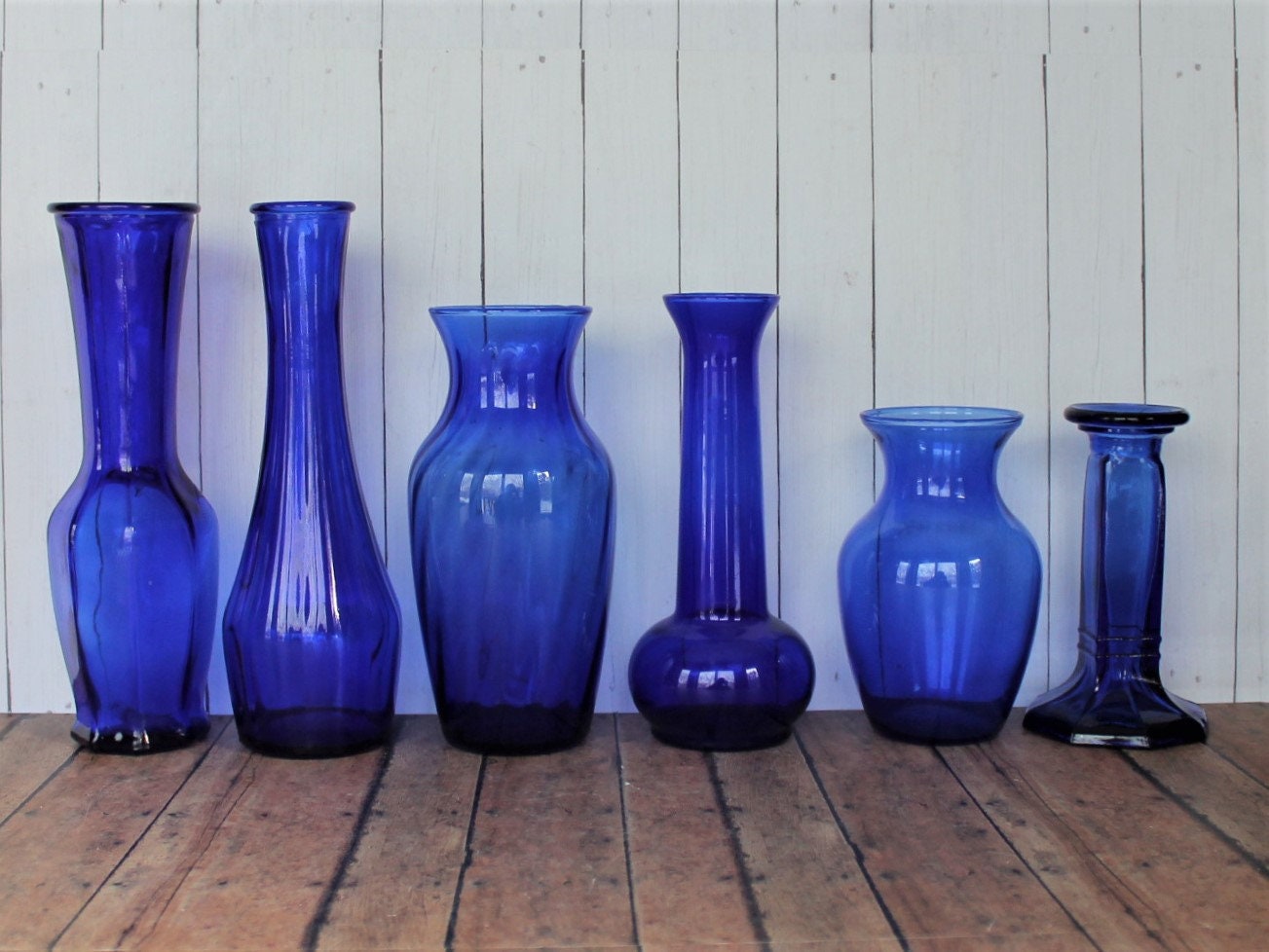 All 6 vases are in very good condition with no chips or cracks. Great set of cobalt blue glass vases!