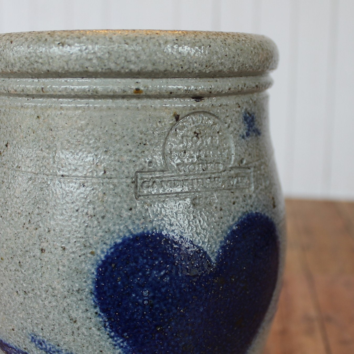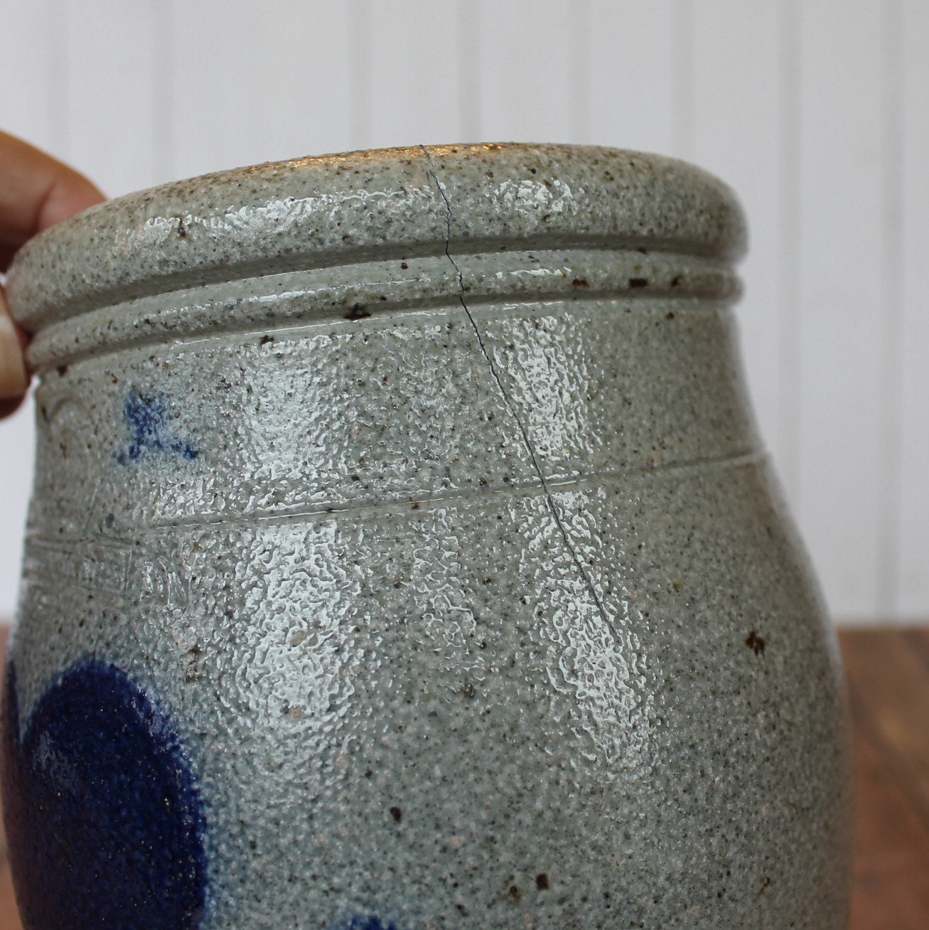 This crock is in nice condition but it does have a hairline crack down one side as shown in the last photo - this crack is 2.5" long.