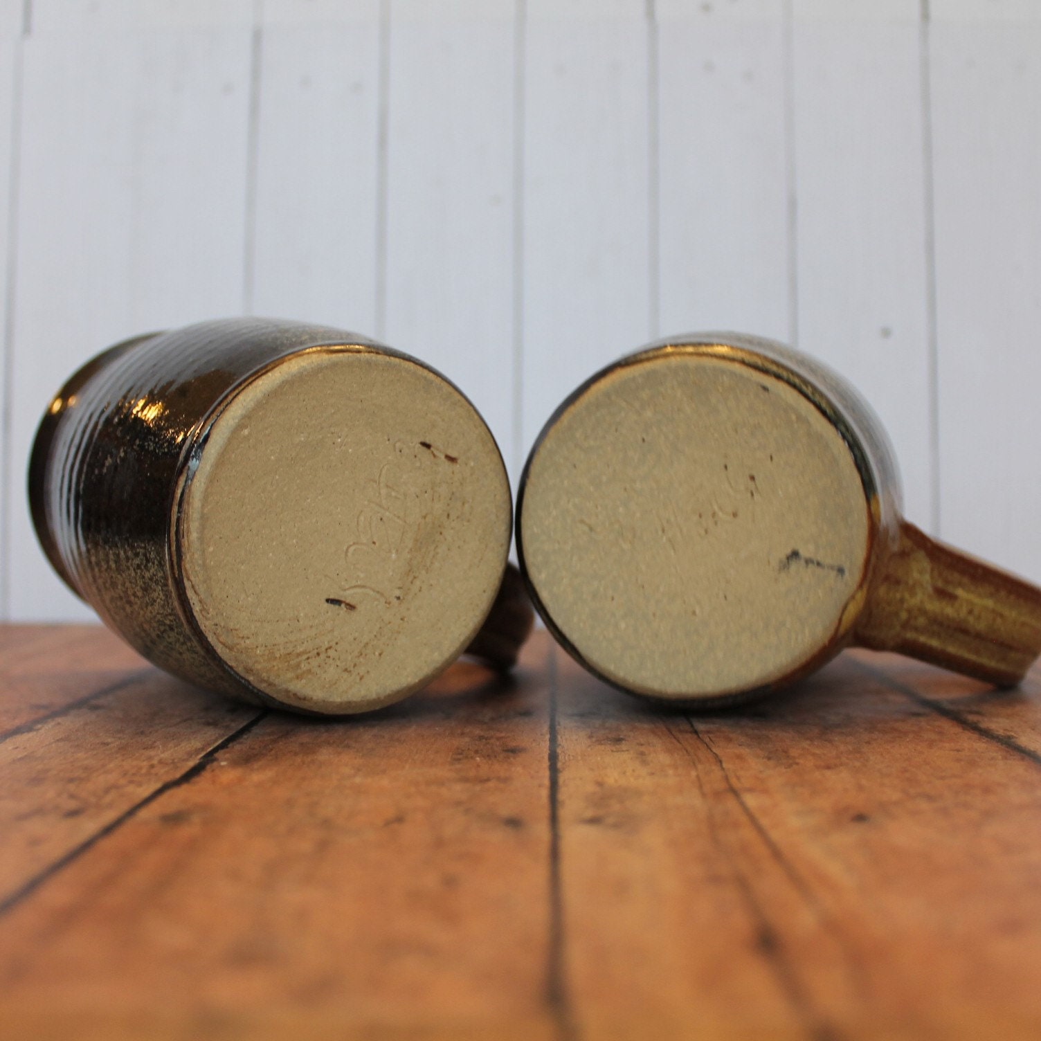 Both mugs are in great condition with no chips or cracks. Great set of rustic pottery mugs!